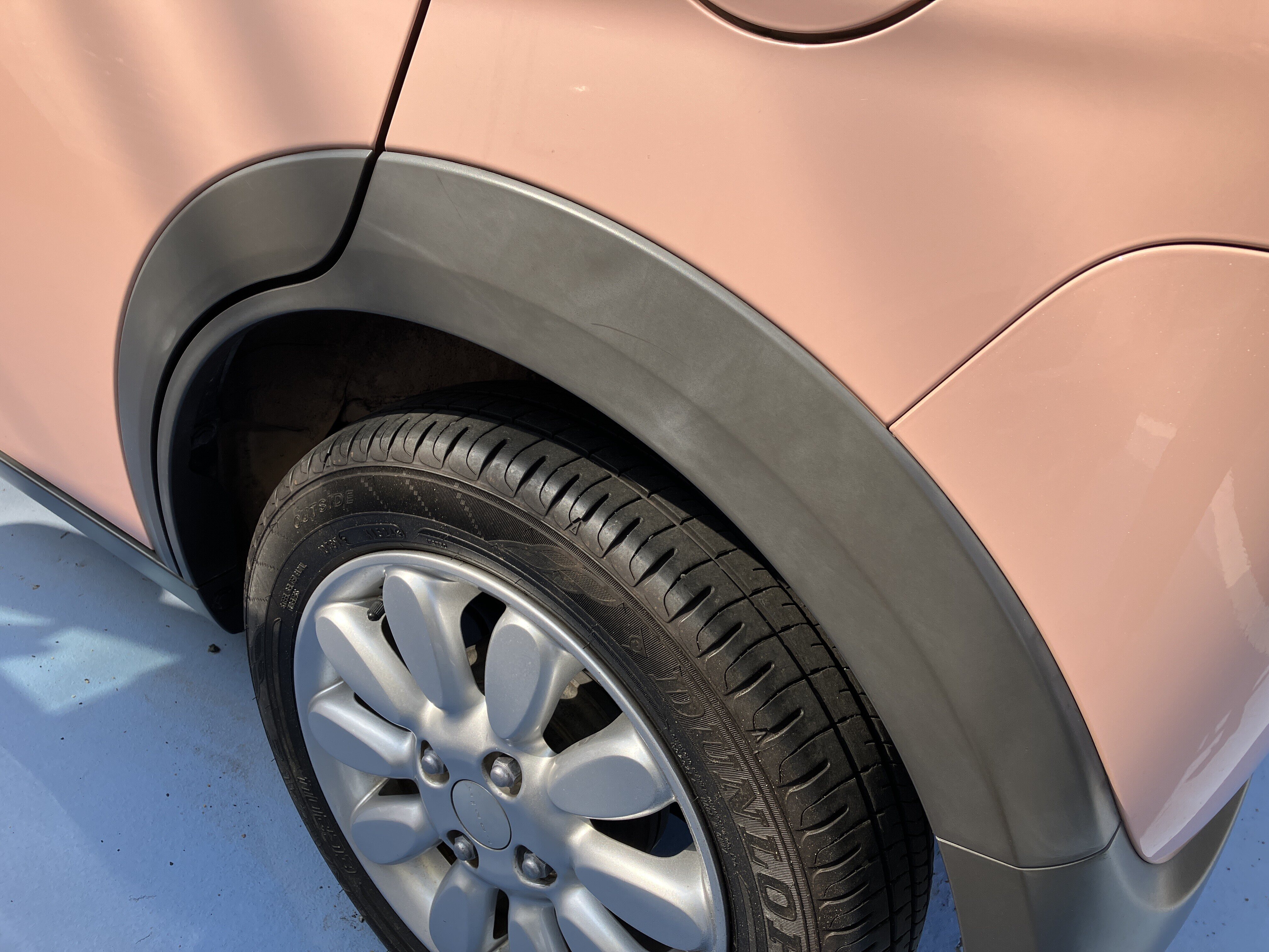 無塗装樹脂で出来た樹脂パーツを装着した車が