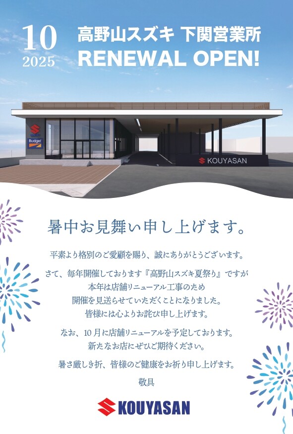 下関営業所よりお知らせ