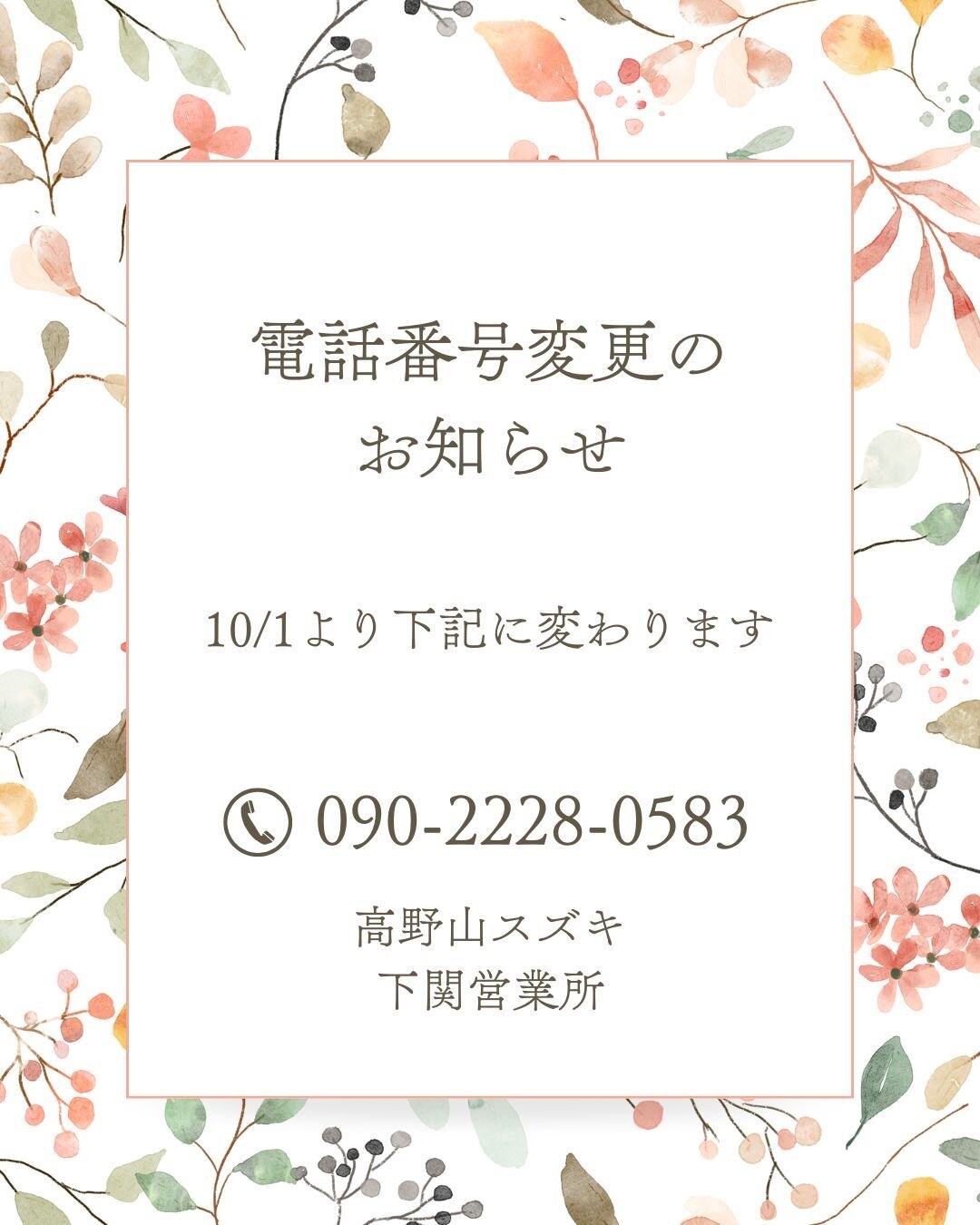 電話番号変更のご案内