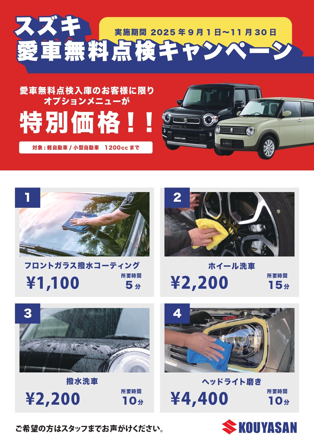 愛車無料点検、特別価格オプションご案内!