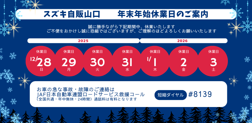年末年始休業のお知らせです。