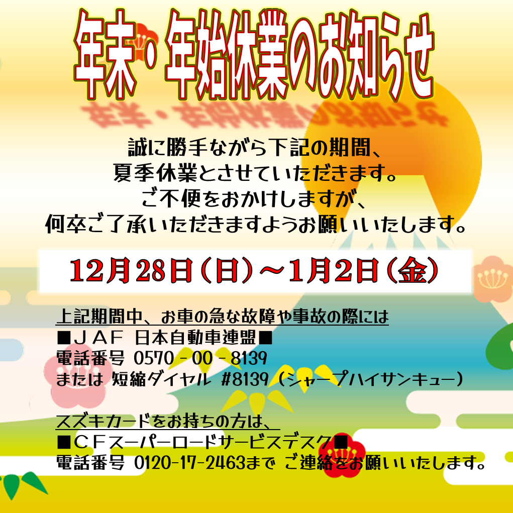 年末年始のご案内