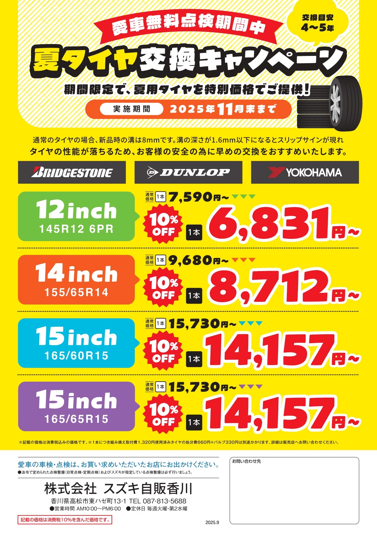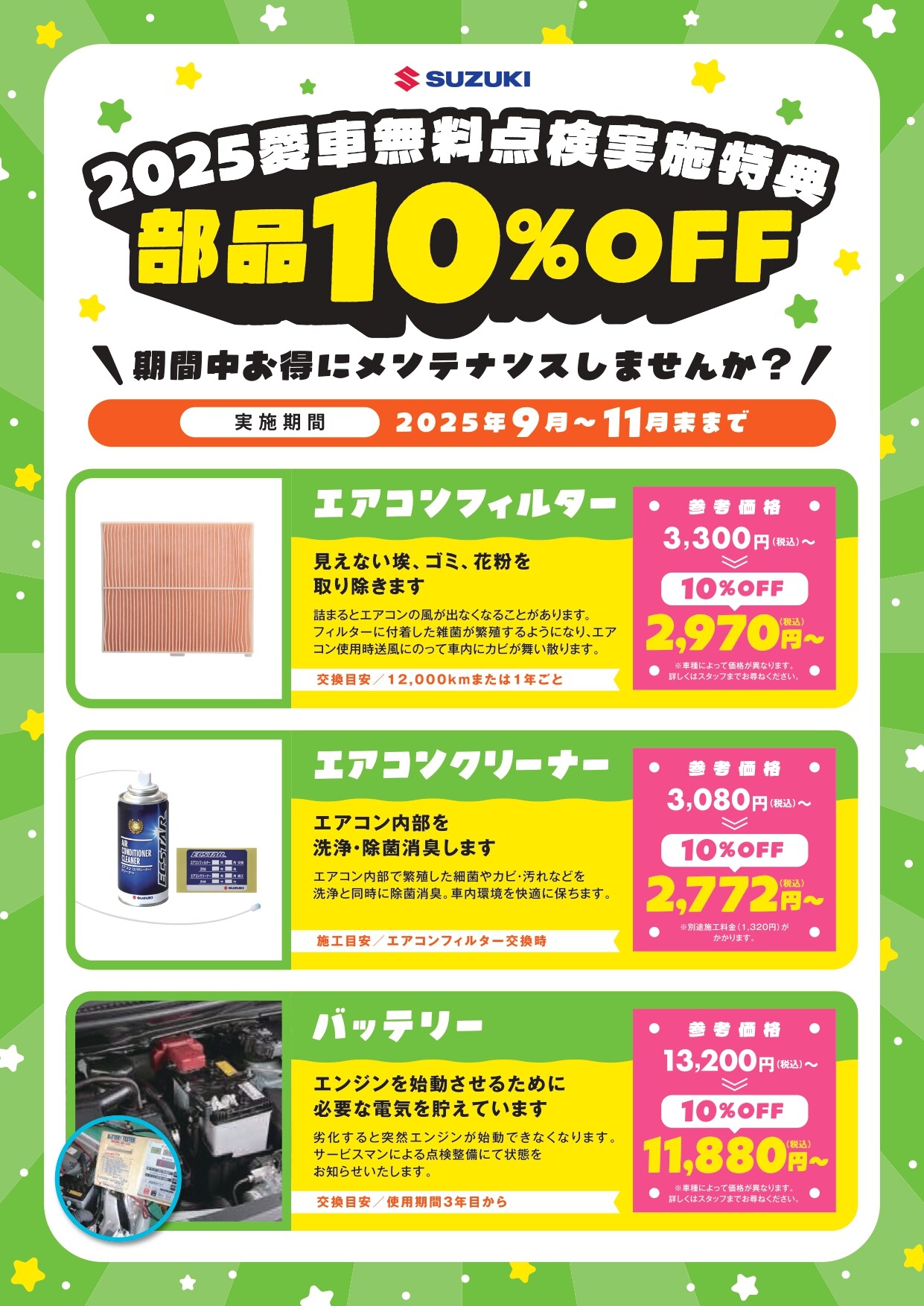 また、9月から11月末まで愛車無料点検も実施中です
