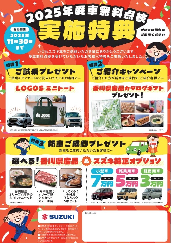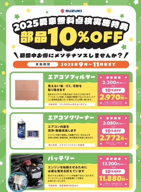 また、9月から11月末まで愛車無料点検も実施中です