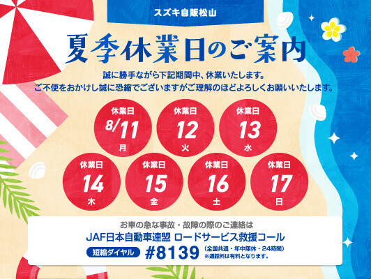 夏季休業日のお知らせ