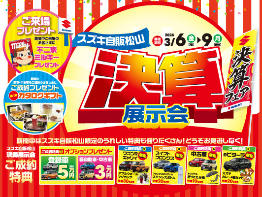 イベント/キャンペーン 2026.03.03 ☆決算展示会のお知らせ☆ 目がかゆいっっ!!!(((-公-))) かゆいかゆいっっっ(/_;) 春ですね 展示場でお車を見ていただきやすい季節になりました!♪ 3月6日から9日まで 決算展示会を行います ご来場プレゼント オプションプレゼント ご成約特典 嬉しい特典をご用意してみなさまのご来店をお待ちしております