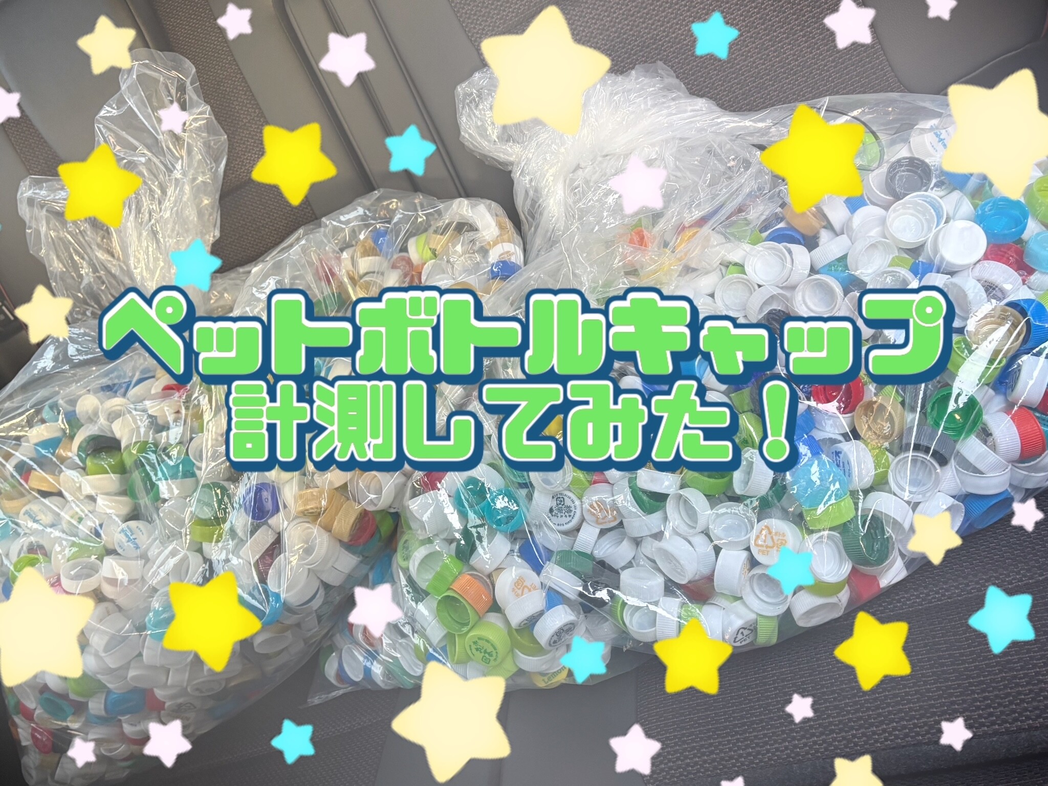 たくさんペットボトルキャップを