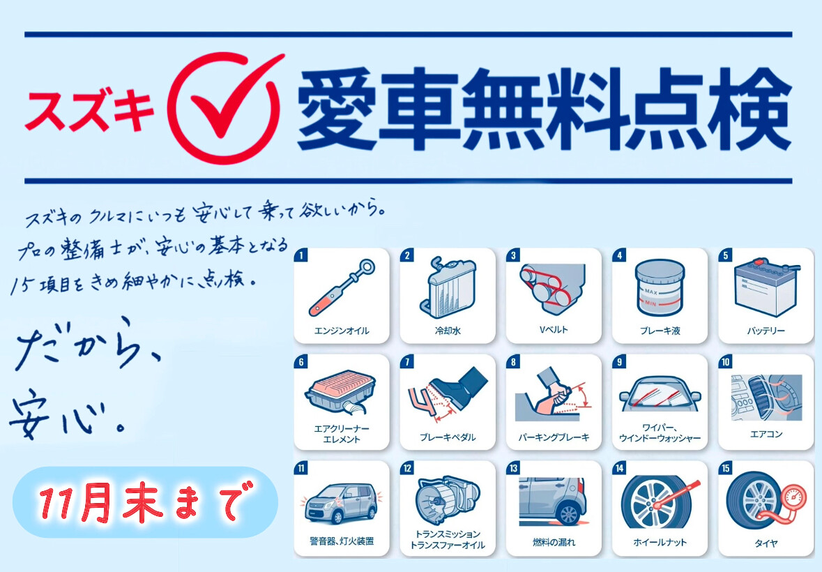 愛車無料点検実施中‼