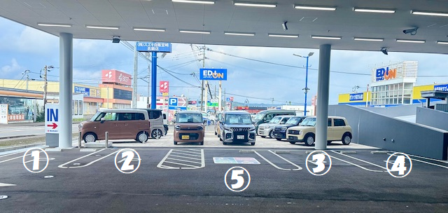 高鍋店では、5台分のお客様駐車場をご用意しております。