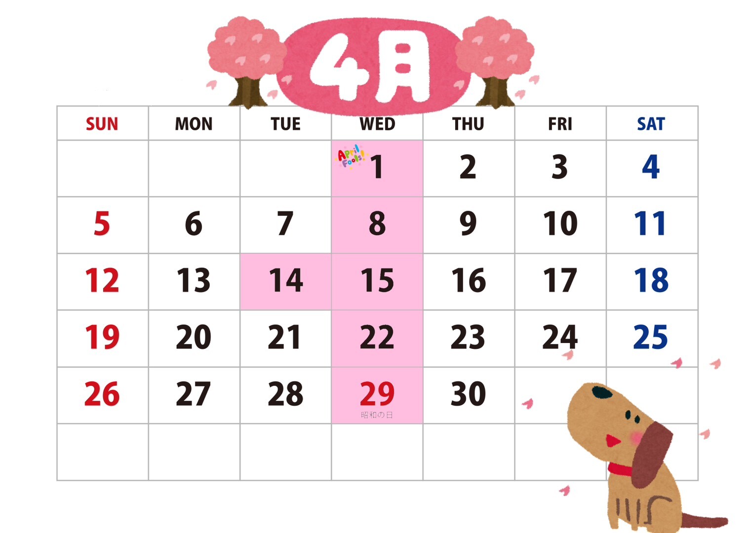 4月の定休日のお知らせです☆