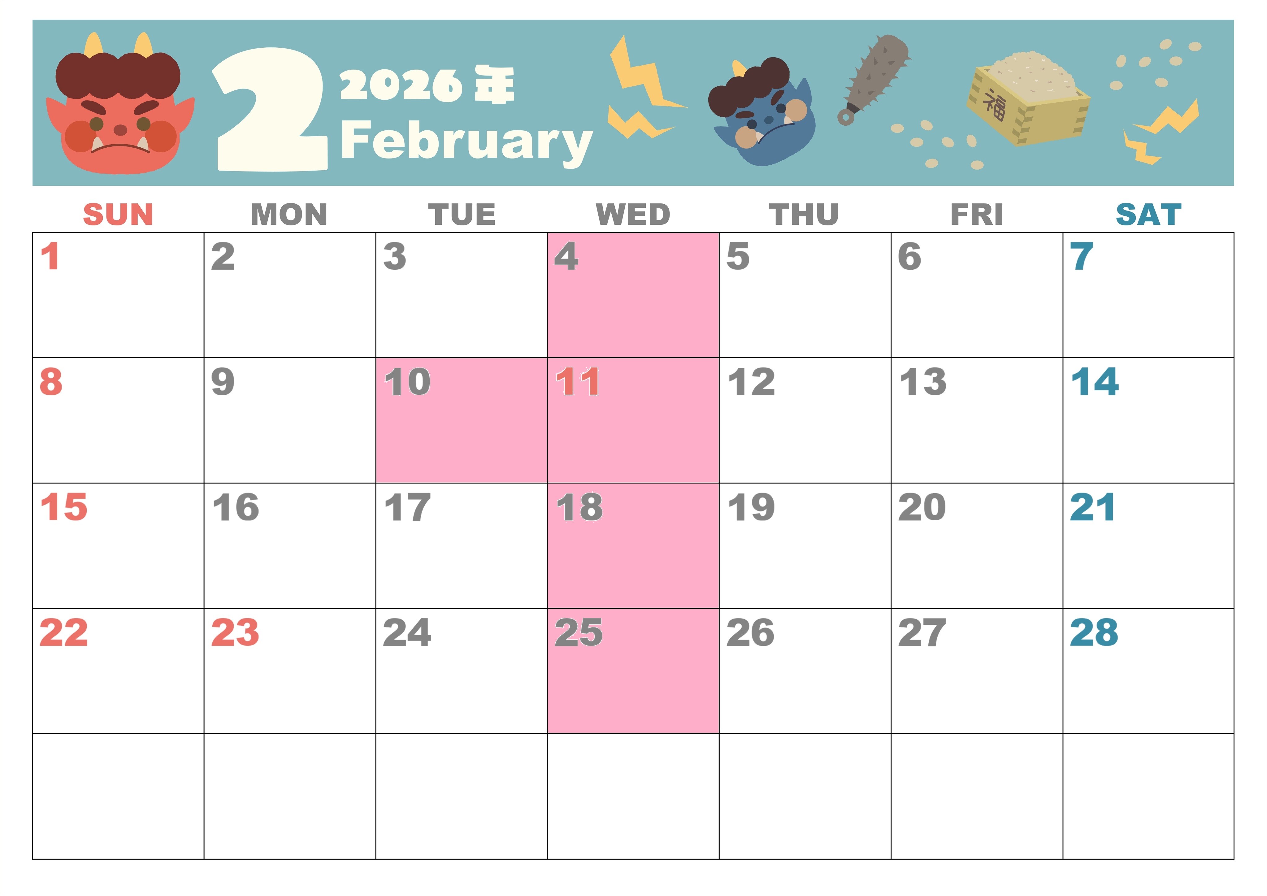 2月定休日のご案内