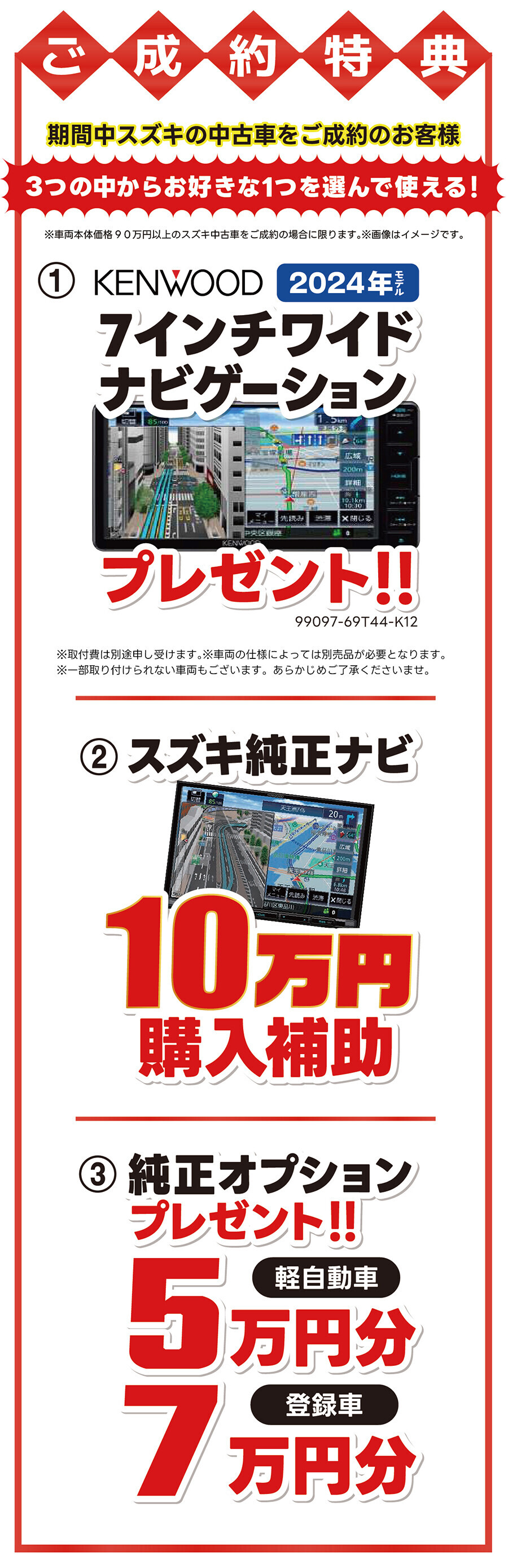 ※だたし、車両本体価格90万円以上のスズキ車に限ります。