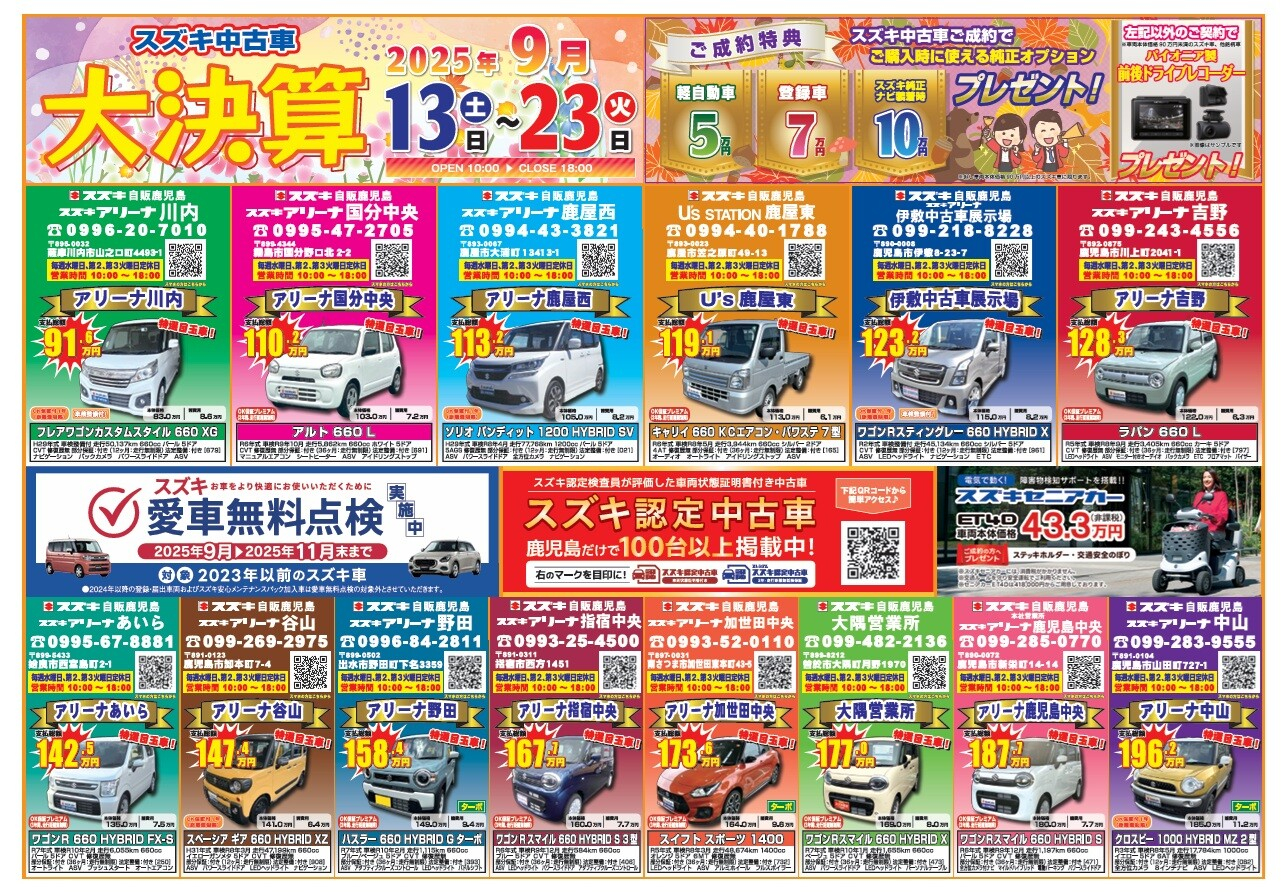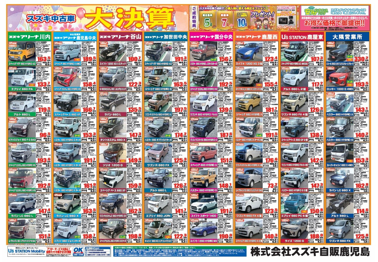 中古車限定のとってもお得なセール 「スズキ中古車 大決算」展示会を開催