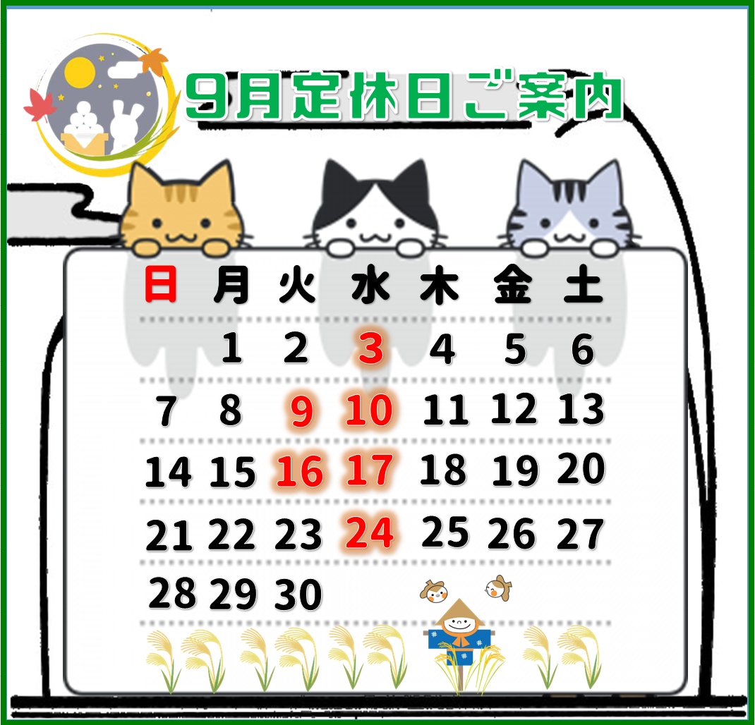 9月定休日のお知らせ!