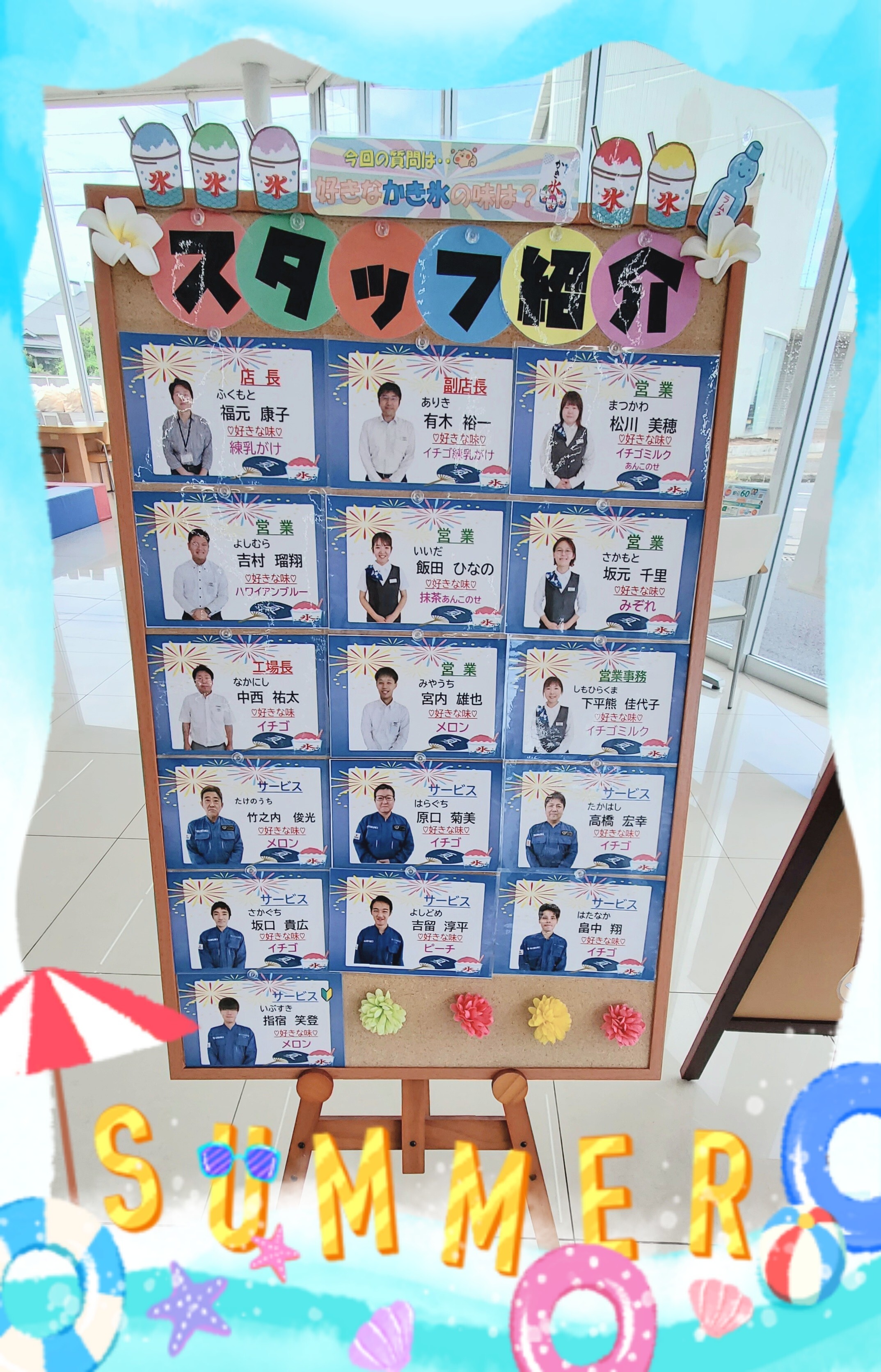 夏をテーマに飾り付けをしております