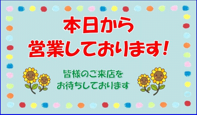 本日より営業しております(*^▽^*)