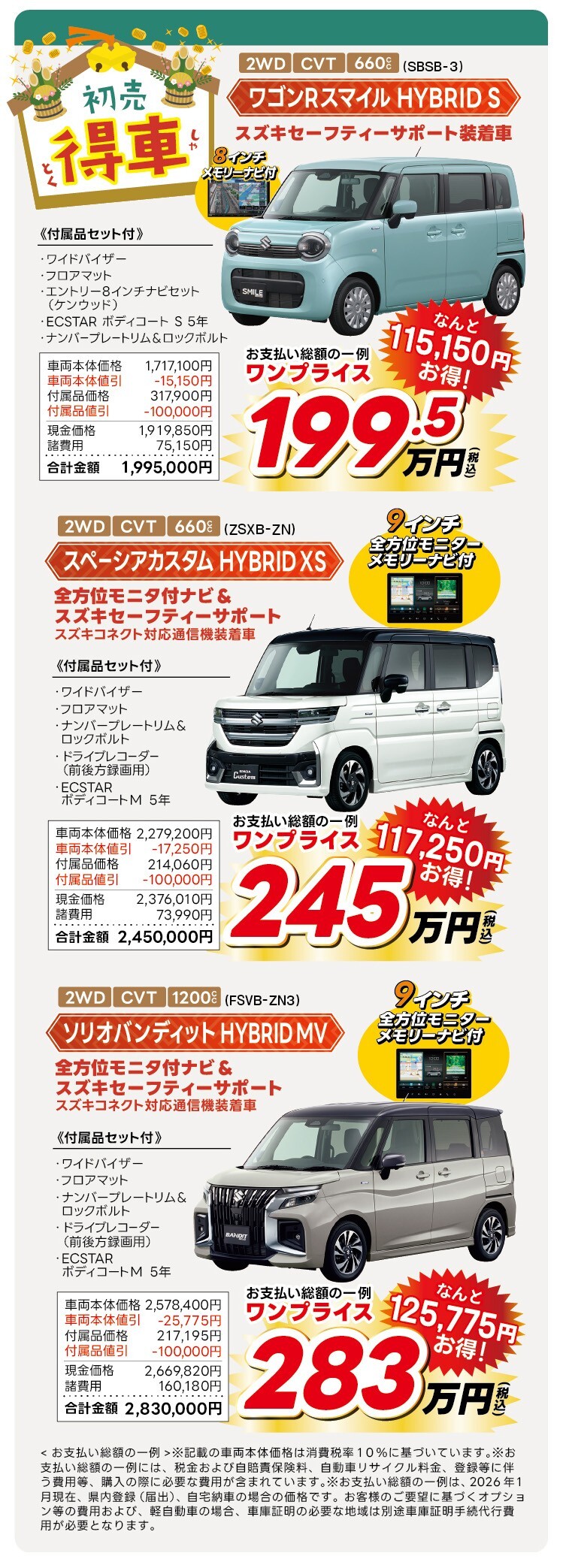 ※お支払い総額の一例は、2026年1月現在、県内登録(届出)、自宅納車の場合の価格です。