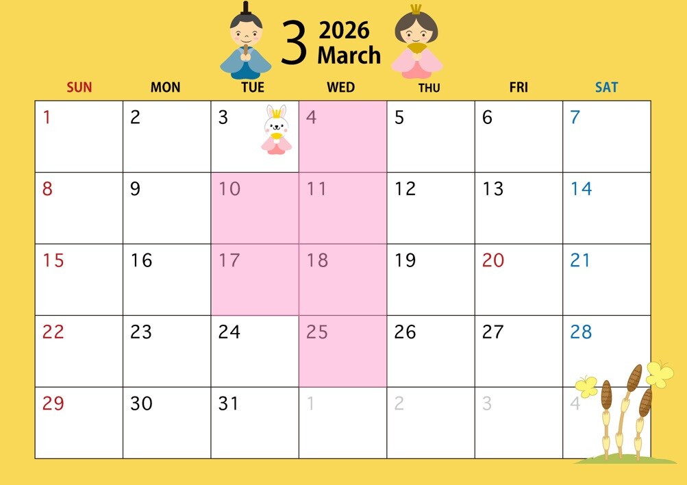 **3月定休日のご案内です**