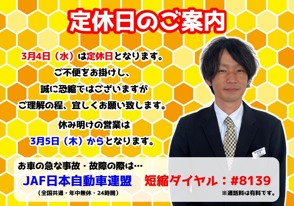 **定休日のご案内です**