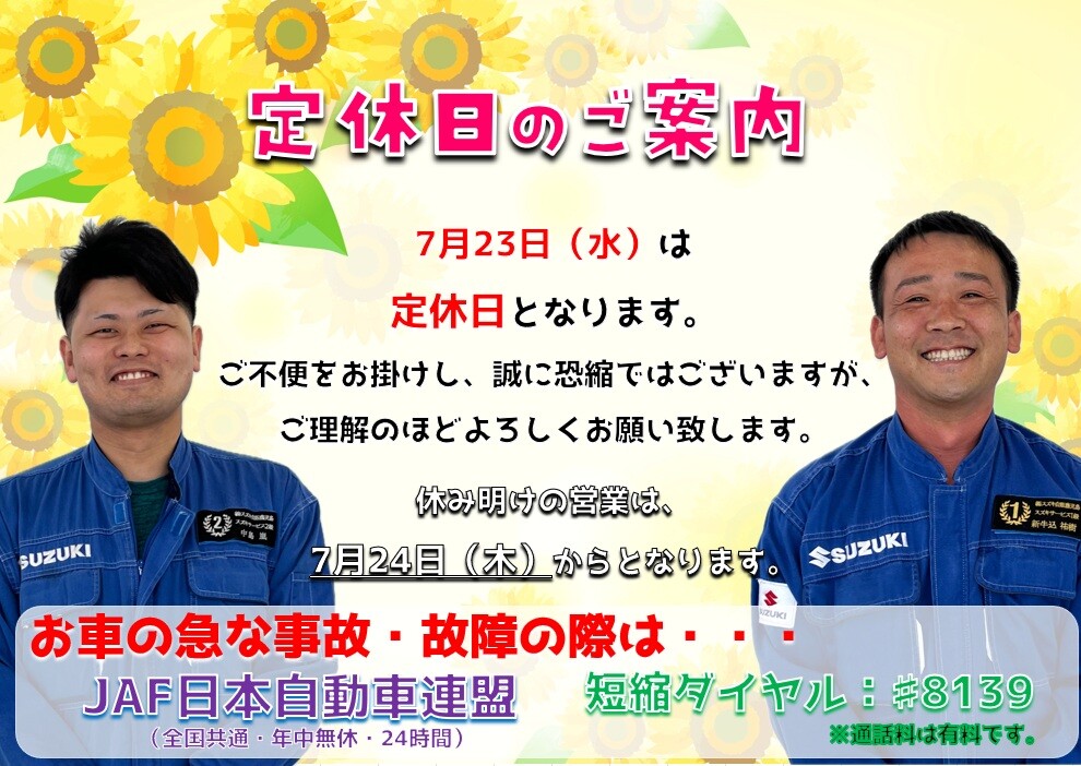 **定休日のご案内です**
