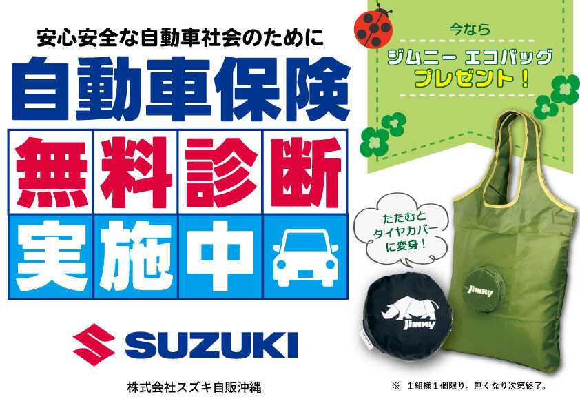 その他 2026.04.03 保険見直ししてみませんか? いつも当ブログを見ていただき ありがとうございます 4月は始まり心機一転 自動車保険、見直してみませんか 今すぐ無料診断できます! 「今の保険、本当に合ってるのかな?」「もっと安くならない?」 そんな方におすすめなのが 自動車保険の無料診断! 実は、自動車保険って✔ 内容が重複していたり✔ 必要以上に高いプランだったり 知らないうちに“損してる”ケースがかなり多いんです いまなら見直し頂いたお客様に ジムニーエコバックプレゼント 皆様のご来店 心よりお待ちしております