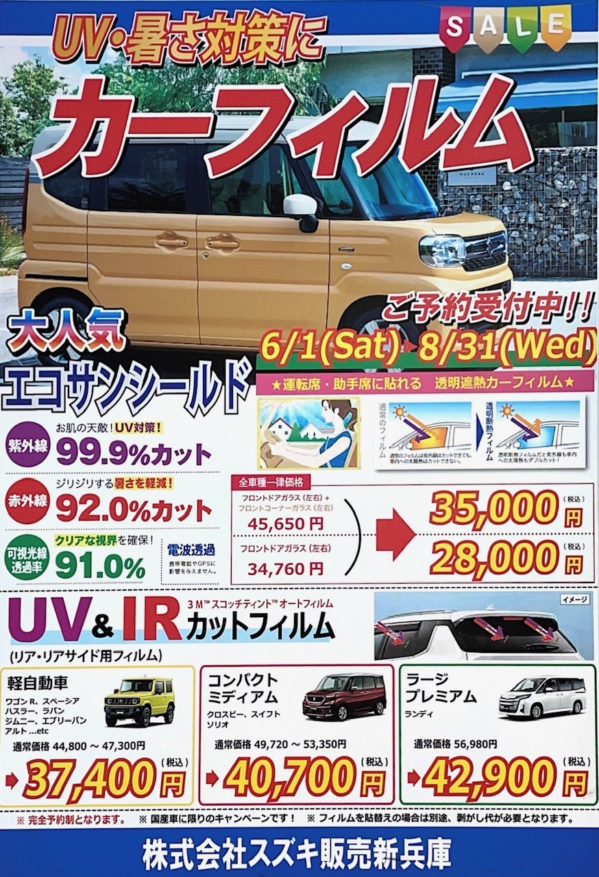 UV・暑さ対策に!カーフィルム★