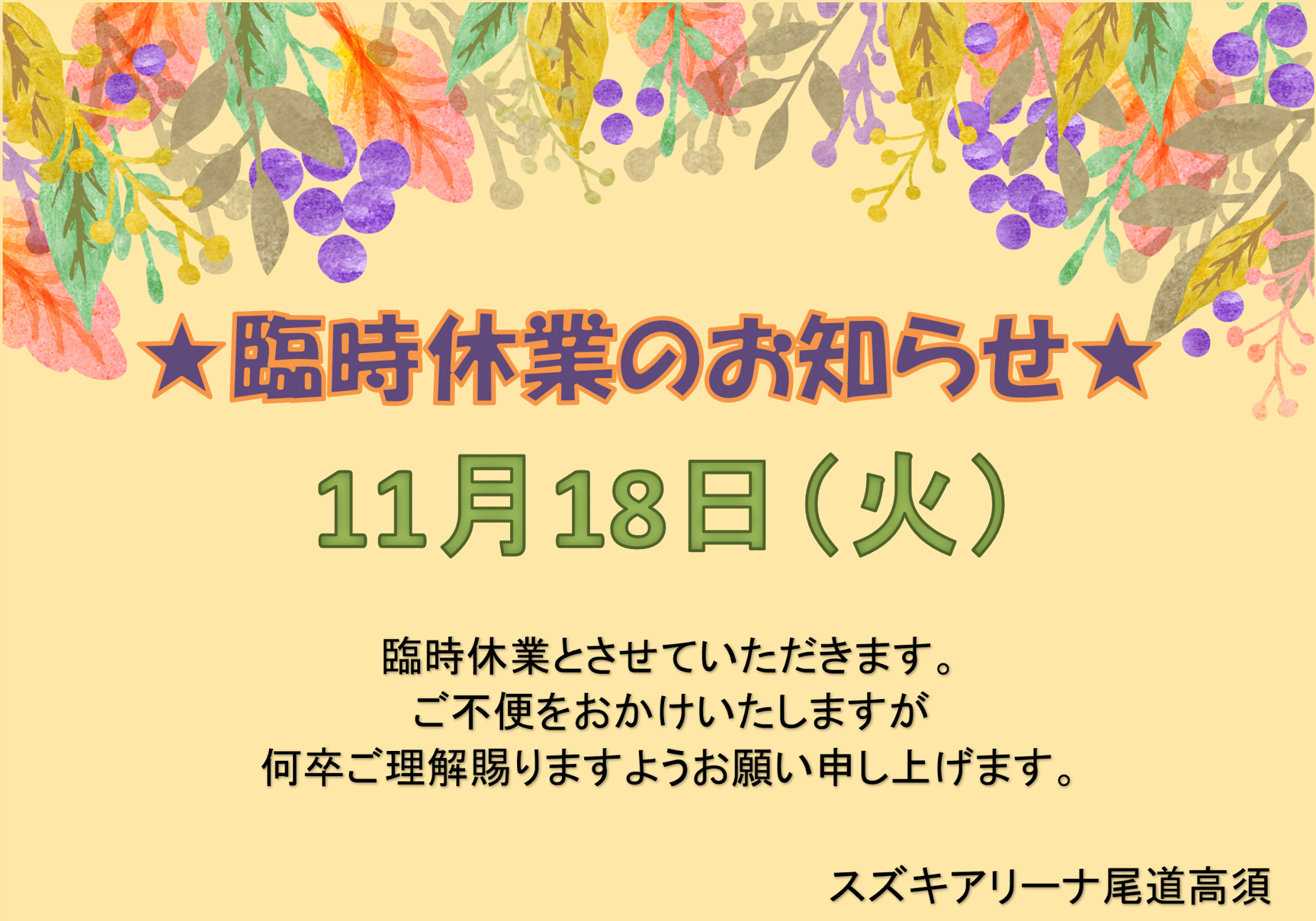 ★臨時休業のおしらせ★