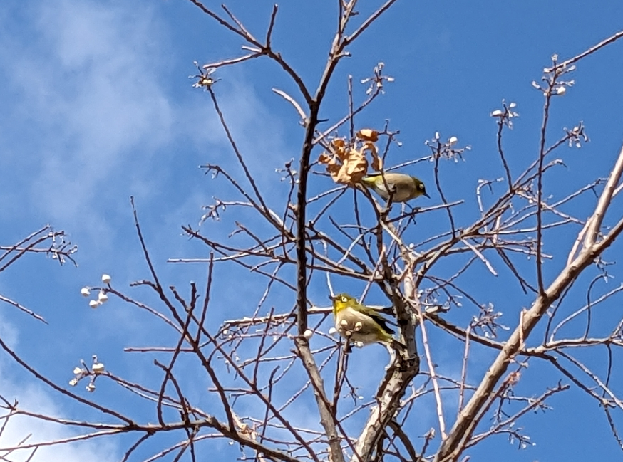 メジロがたくさん木に止まってました。