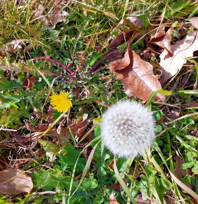 枯葉に紛れて、タンポポも咲いてました 。