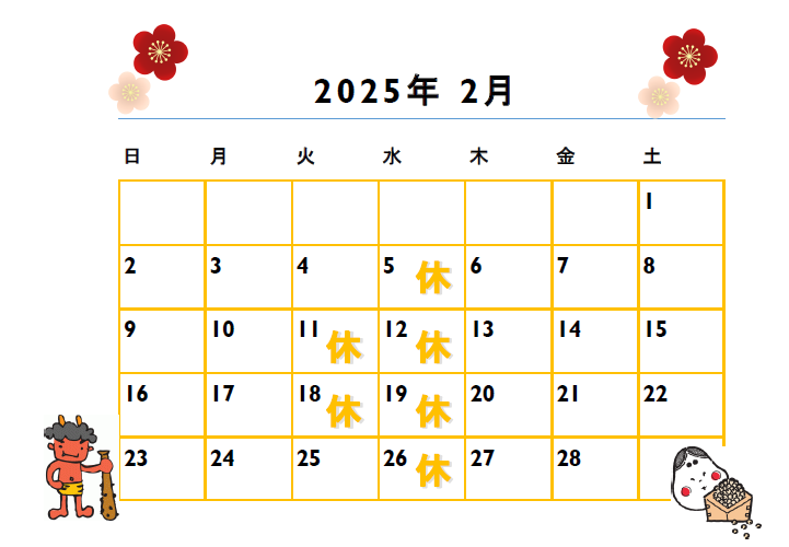 ◆◆◆2月定休日のご案内◆◆◆