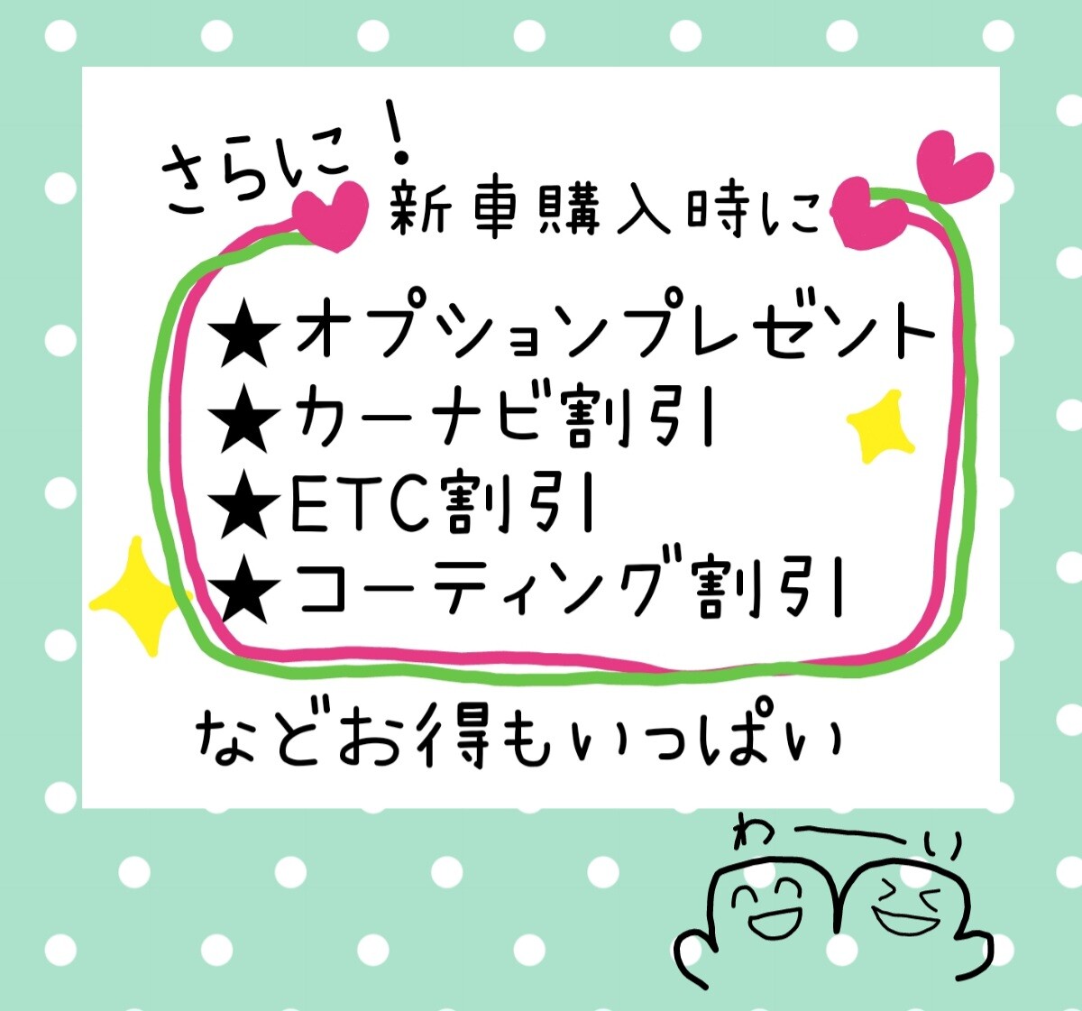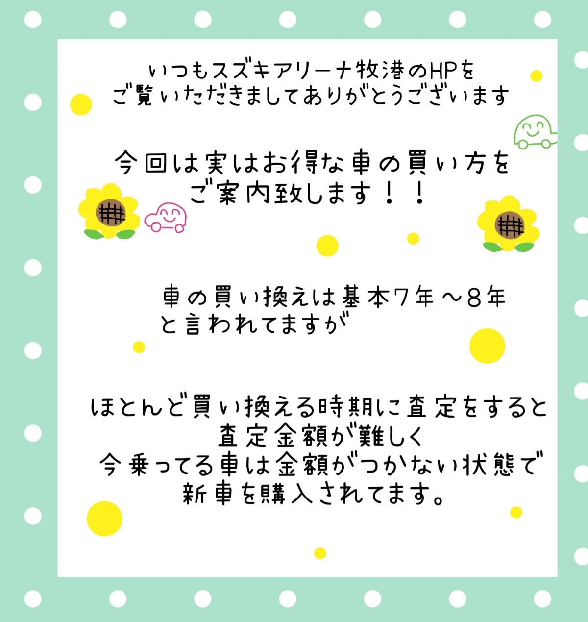新車・中古車どちらも販売できますので気軽にお声かけください
