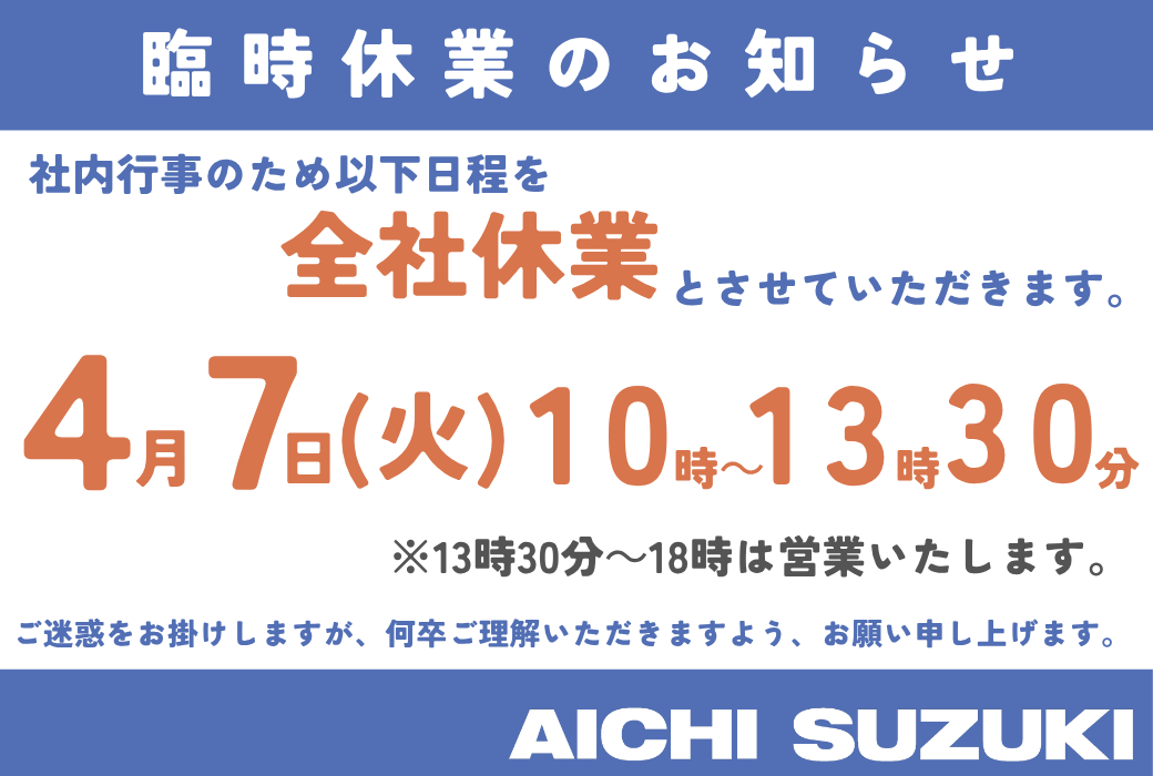 臨時休業のお知らせ