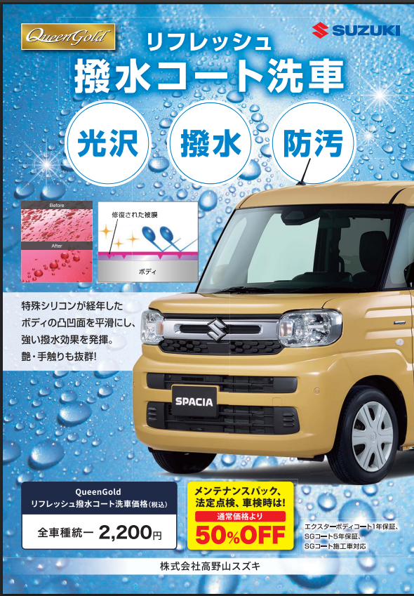 今当社では撥水コート洗車をオススメしております