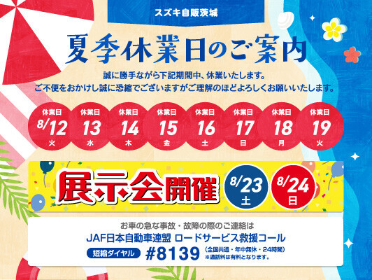 夏季休業のご案内です!!