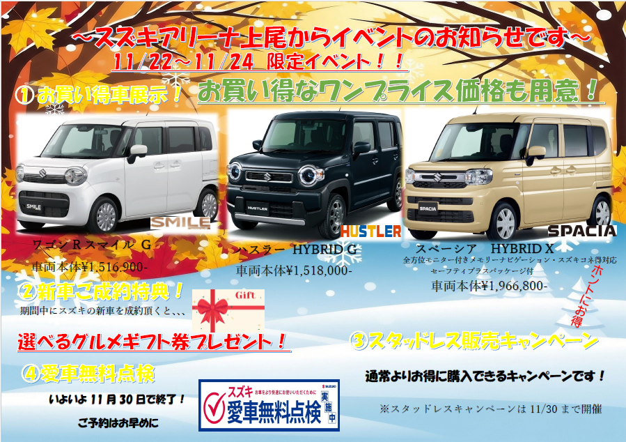 さて、スズキの先行初売りフェアも14日までとなりました!