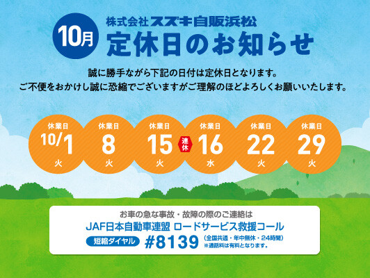 定休日のお知らせ