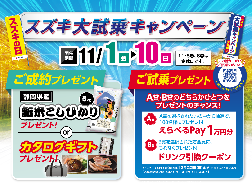 またご試乗プレゼントもご用意しております