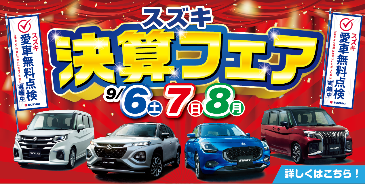 安心のスズキ愛車無料点検&お得な決算フェア開催!