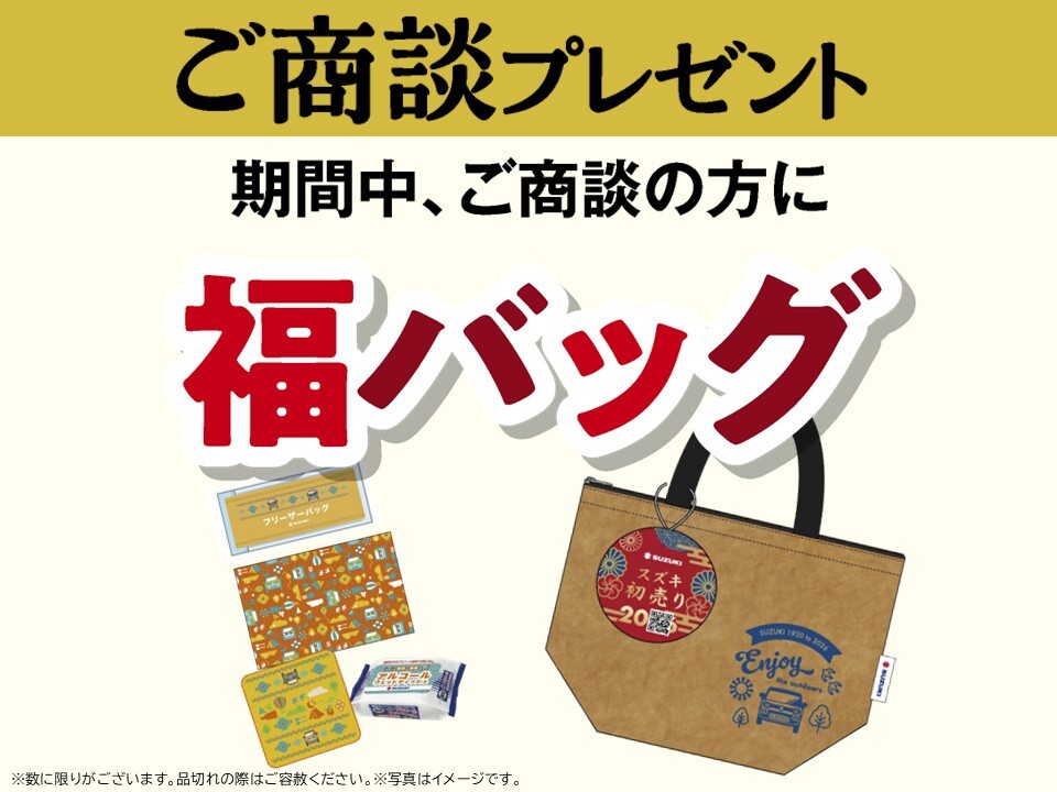 期間中ご商談いただいた方に「スズキのお出かけ福バッグ」をプレゼントいたします