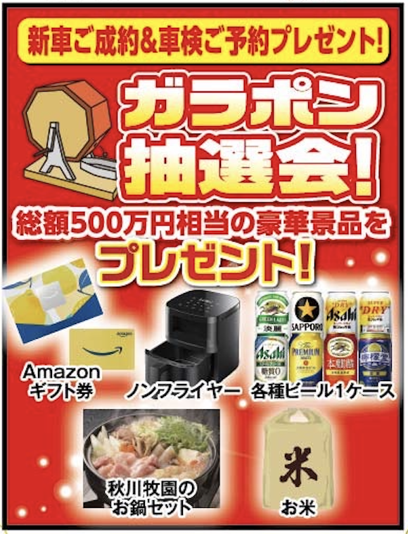ガラポン抽選会で総額500万円相当の豪華景品をプレゼント!