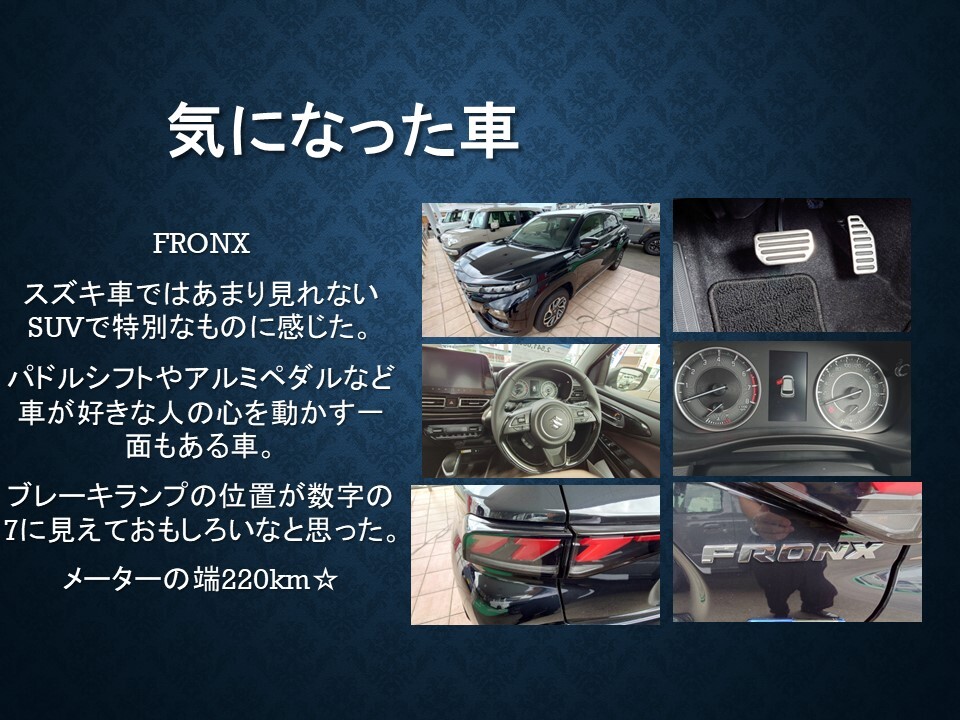 私が乗りたいなと思った自動車はフロンクスです。