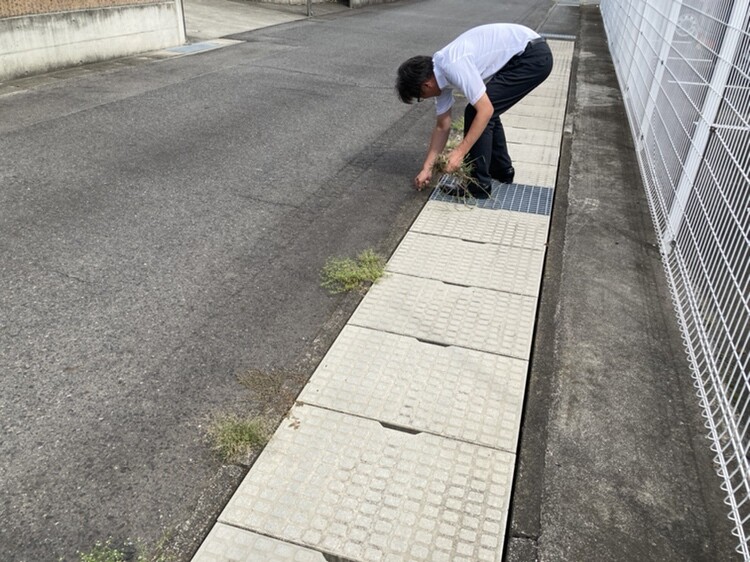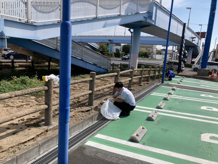 今回は雑草の除去に加えて、駐車場や歩道に落ちていたごみや吸い殻の回収、