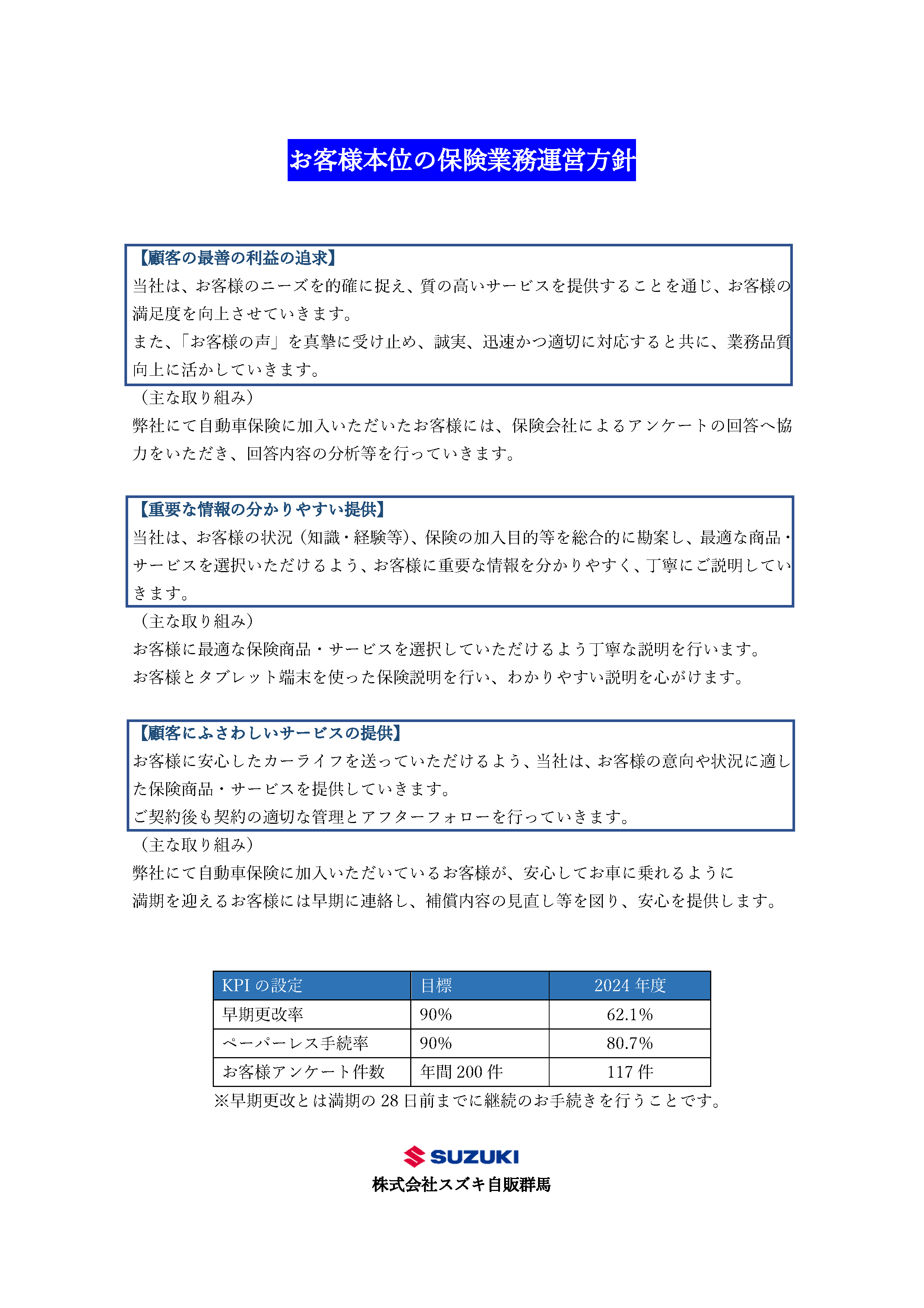 お客様本位の保険業務運営方針