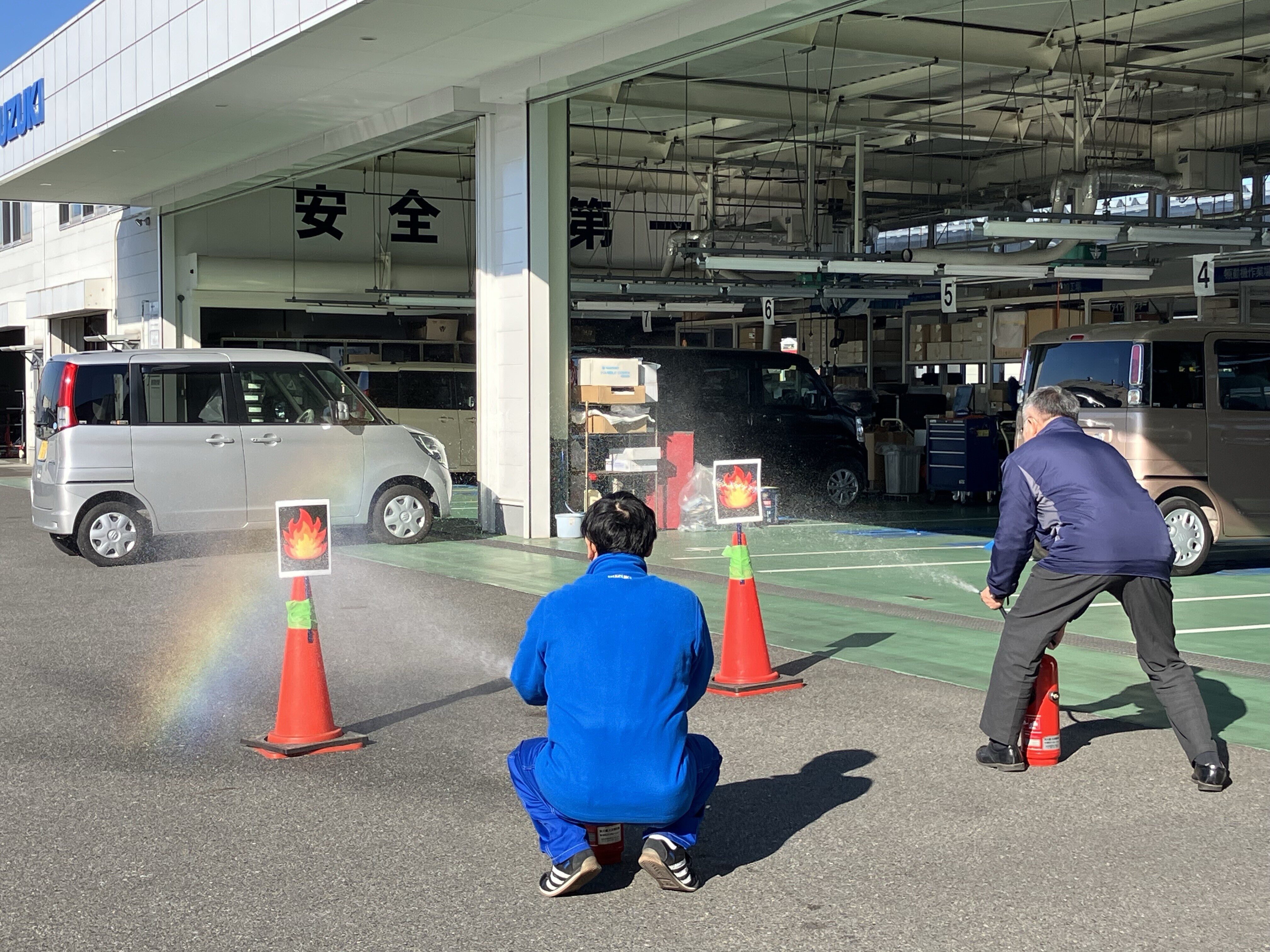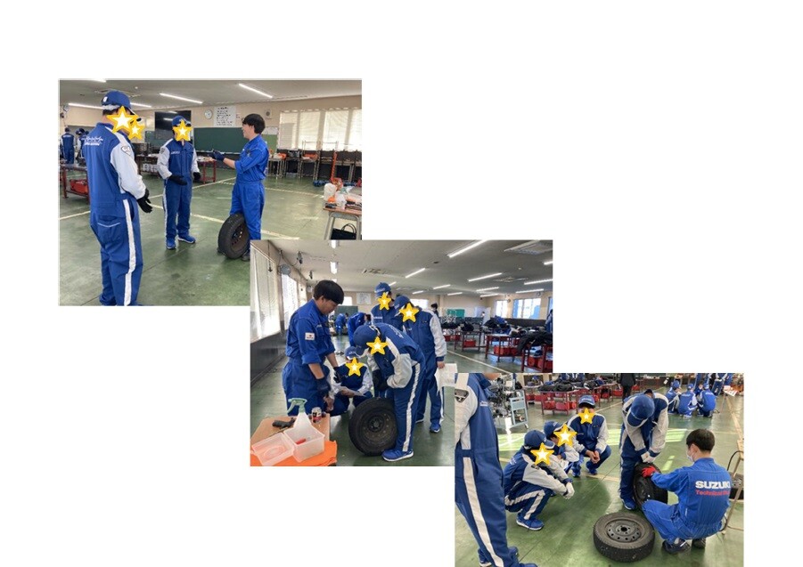 エアバックの展開を見学した後は、タイヤのパンク修理実習を行いました!