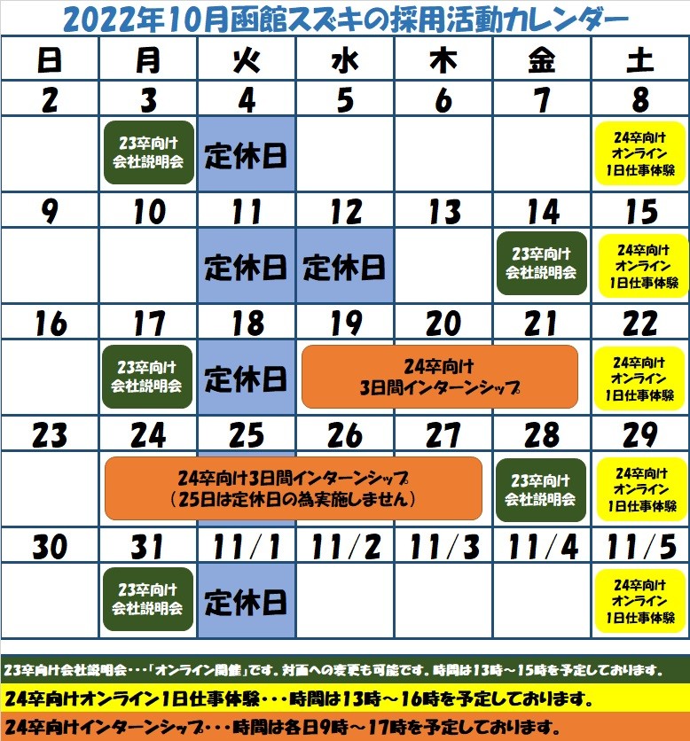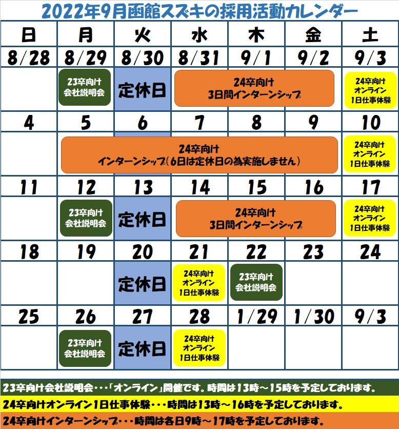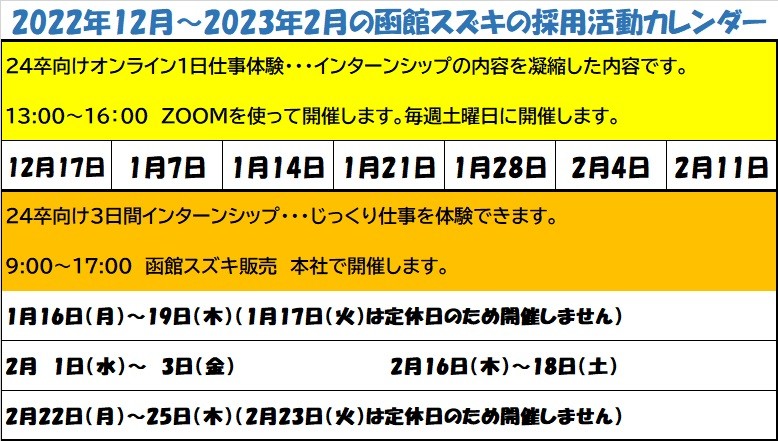 ・24卒向け「オンライン1日仕事体験」「3日間インターンシップ」は上記日程で行います。
