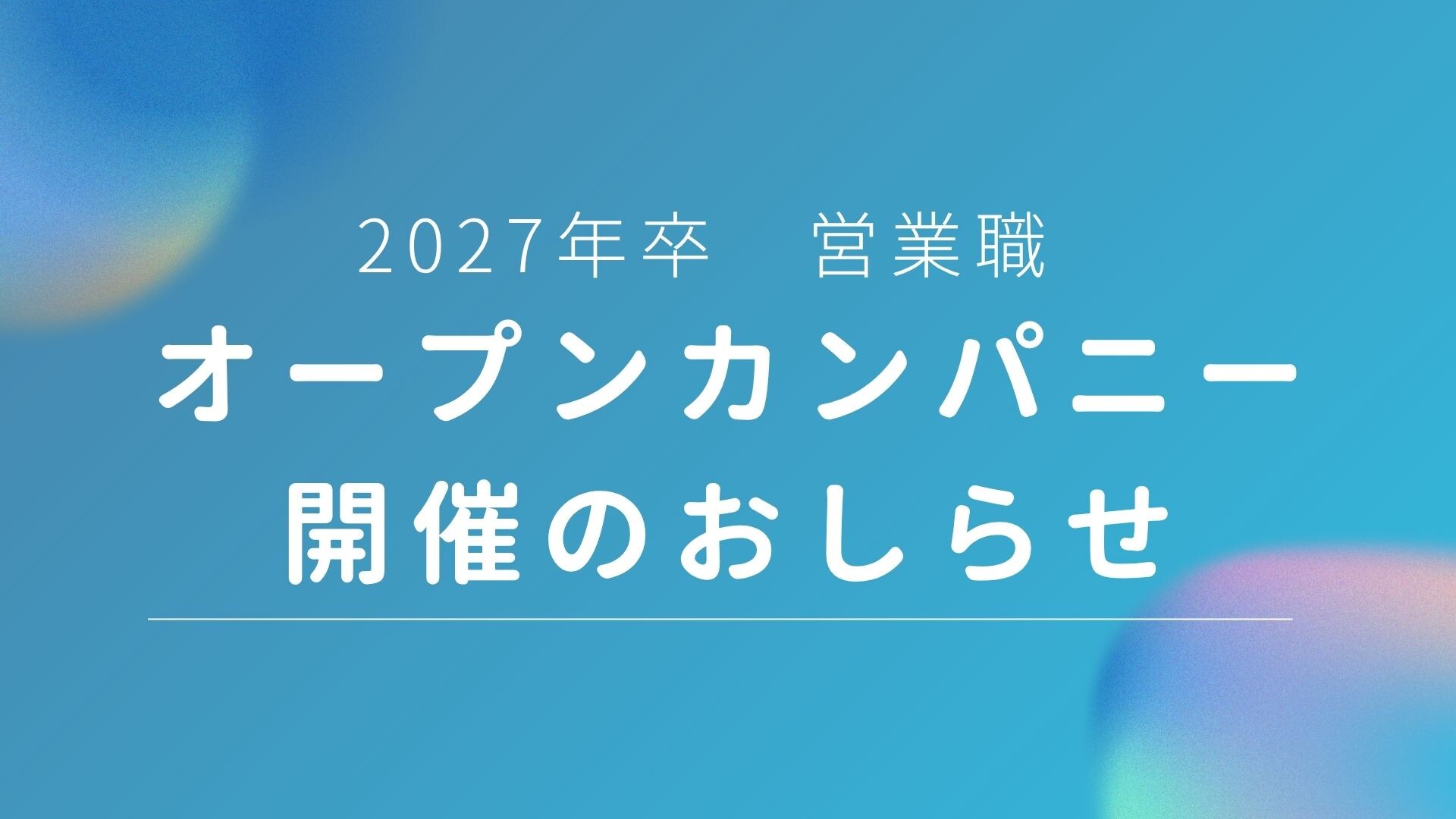 【営業職】2027年卒対象 オープンカンパニー開催します!