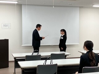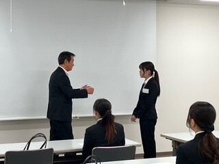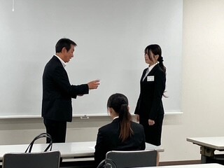 名刺の渡し方、電話の取り方など緊張しながら練習していたみんなが
