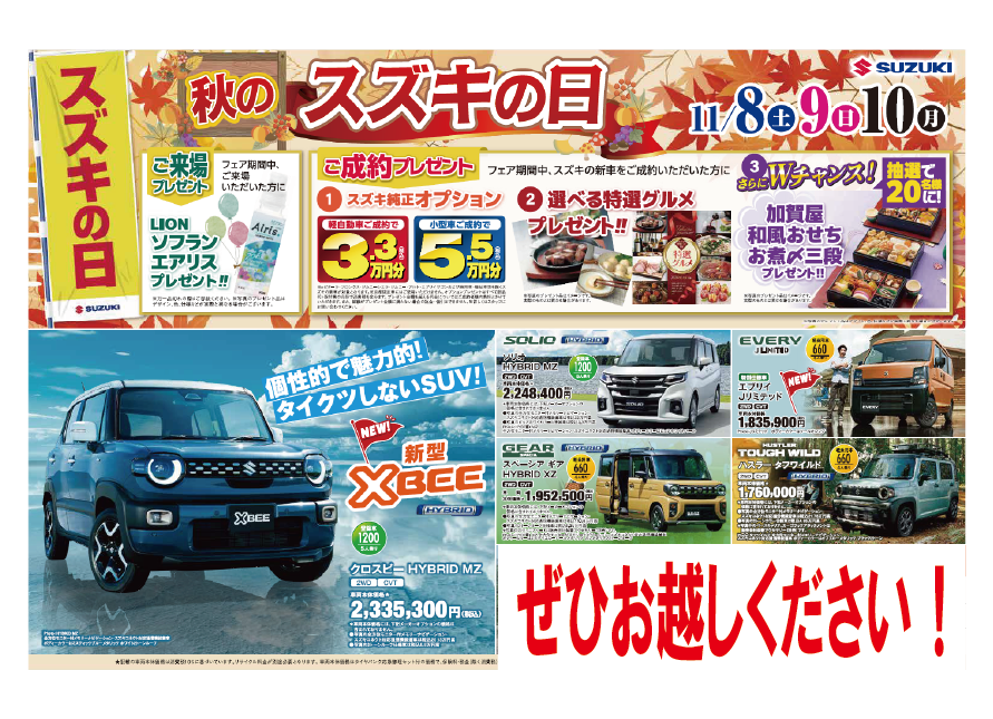 【11月】秋のスズキの日【8日(土)9日(日)10日(月)】