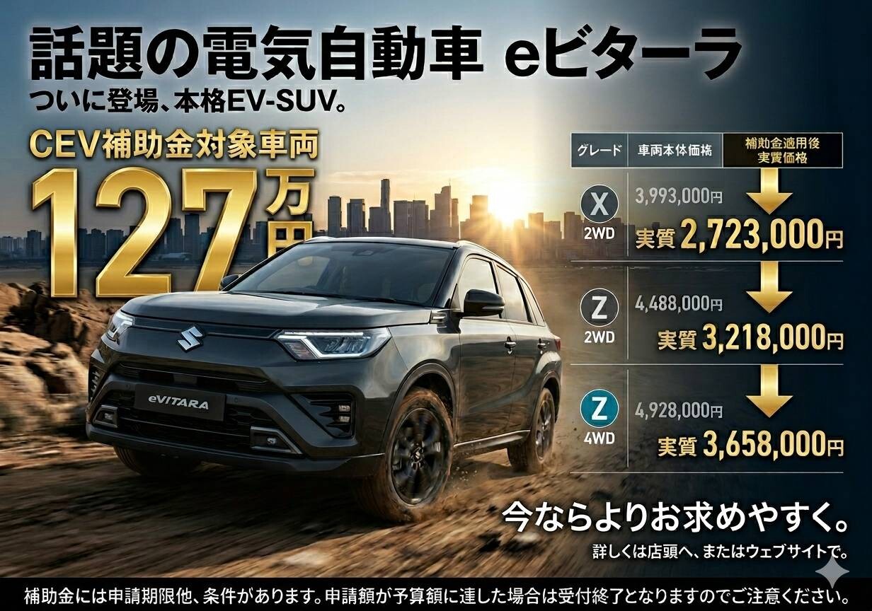 話題の電気自動車 eビターラの補助金情報