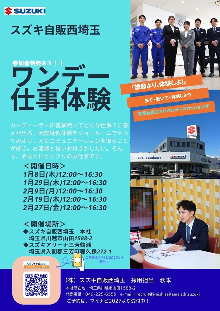 本年もやります!!ワンデー仕事体験 予約受付中!